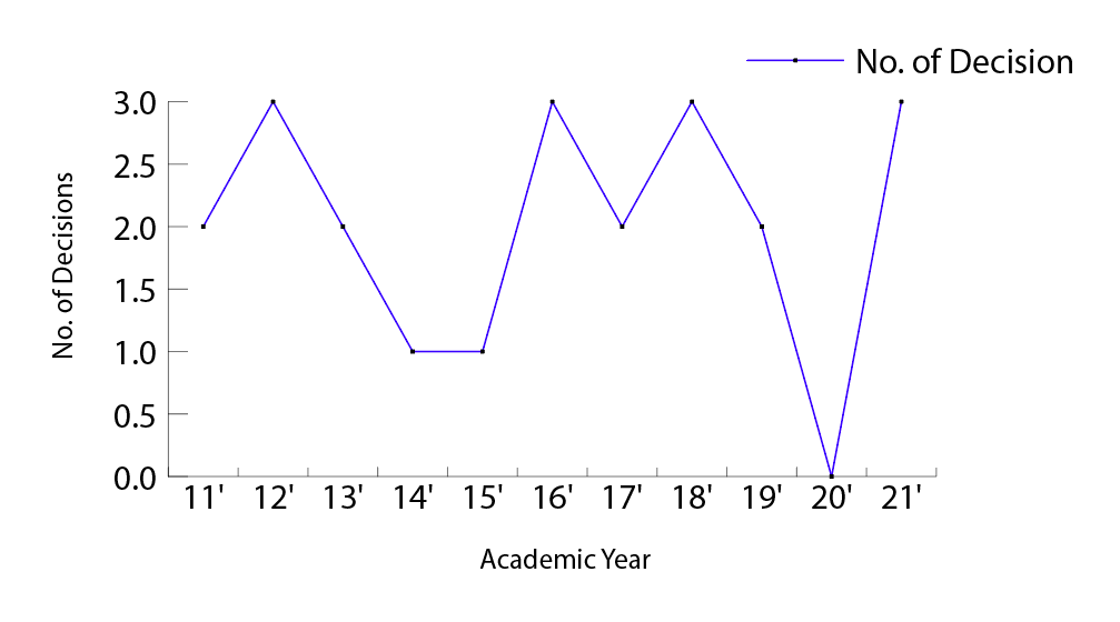 Graph of annual decisions of sexual misconduct